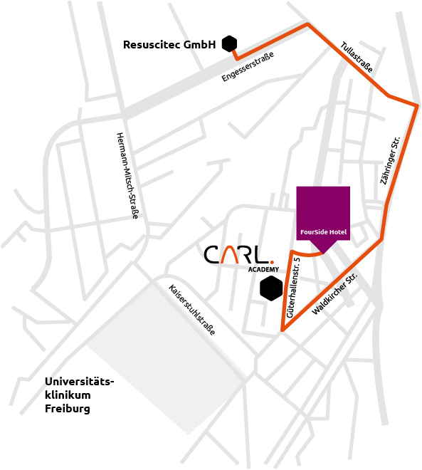 The CARL Academy combines an online training portal and a training location in one of Freiburg’s hippest districts. On our online portal users and interested parties can find a selection of product and background information, training material as well as instructional videos for the optimal use of the CARL System. The CARL Academy has been established for perfusionists, physicians, rescue services and nursing professionals who wish to expand their skills in the framework of the CARL training concept.