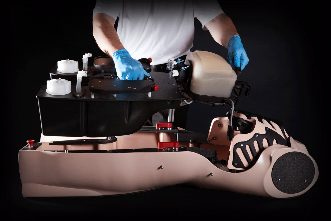 Die femorale Punktion und Kanülierung kann landmarkengestützt, palpatorisch oder ultraschallgestützt durchgeführt werden. Die Pads setzen sich aus einer realitätsnahen Gewebenachbildung aus recycelbaren Materialien, einer Nachbildung des Iliakal- und Femoralknochens sowie einem den physiologischen Verhältnissen im Leistenbereich angepassten Schlauchsystem zusammen.