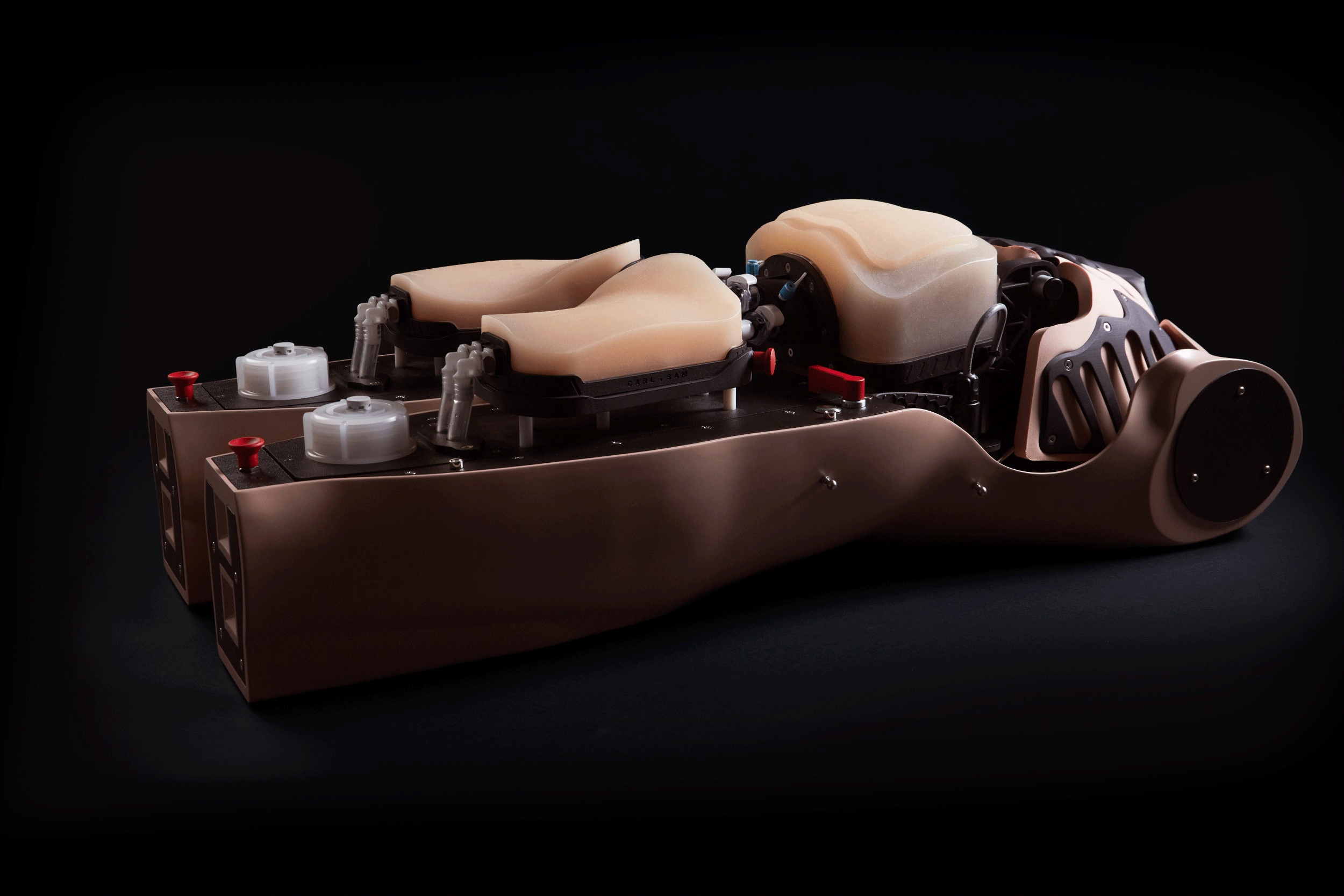 CARL SAM ermöglicht erstmals ein realitätsnahes ECPR-Training durch die Kombination eines CPR- und ECMO-Trainers, unterstützt durch die Palpation von Pulsen, simulierten Blutfluss und die Wahl aus zwei Perfusionsmodi: